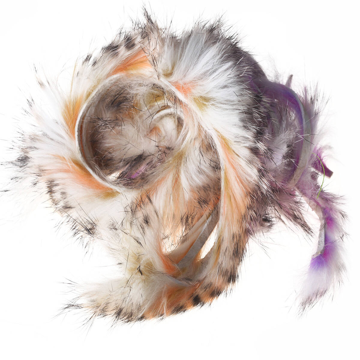 White micro rabbit strips with streaks of 2 colors, then topped with black barring. The result is a mix of white and pastel to medium intensity colors on the underfur and the same mix with a grizzly effect on the tips. Way cool! 4 strips per package.