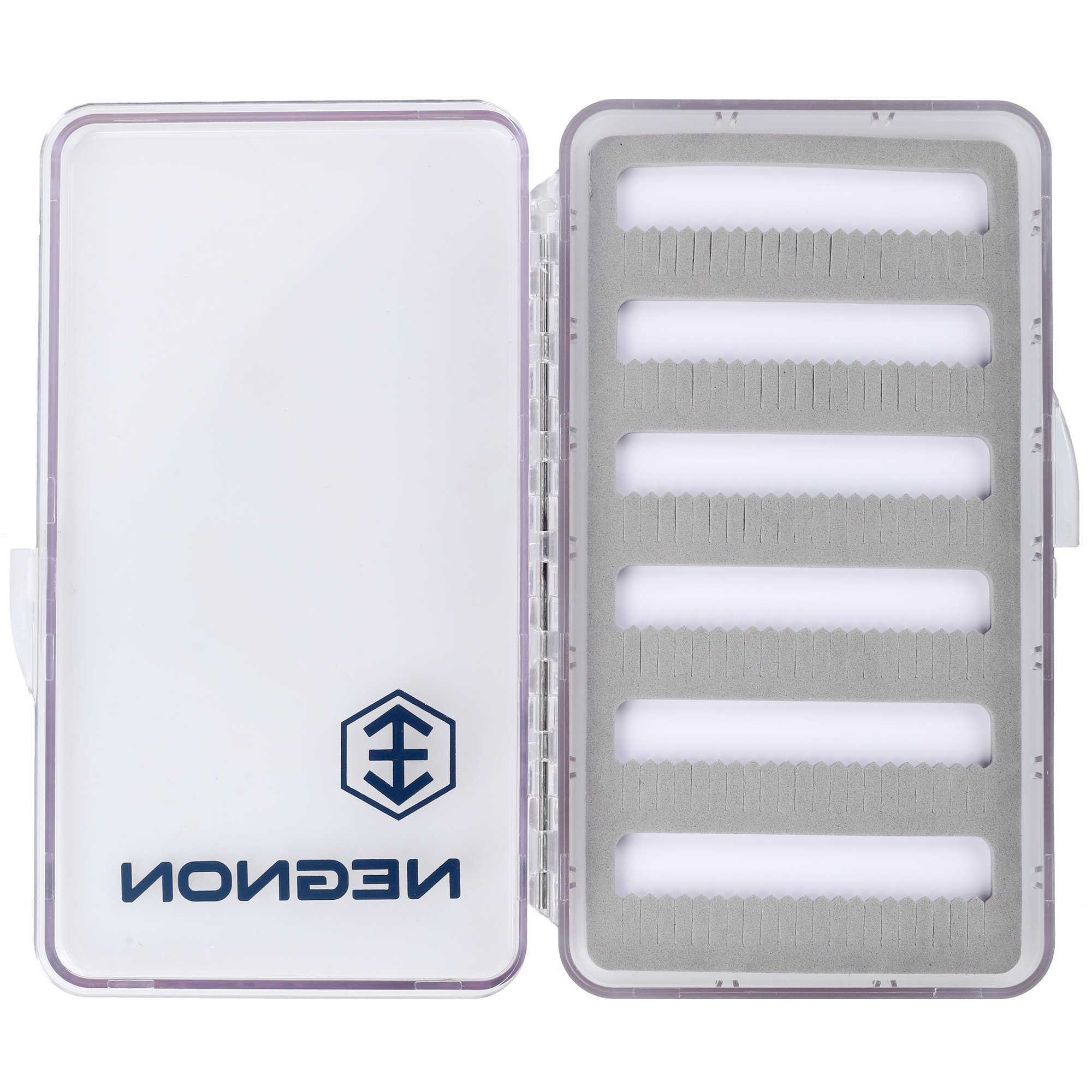 Scatola portamosche trasparente Negnon - Grande è una scatola semplice e maneggevole per le mosche. Il suo design leggermente più spesso consente di accogliere qualsiasi tipo di mosca. L'involucro trasparente permette di vedere rapidamente il contenuto senza dover aprire la scatola. La robusta cerniera e la semplice chiusura a scatto garantiscono durata e facilità d'uso. All'interno è presente un inserto in schiuma per appuntare le mosche, con ritagli disponibili in diverse varianti. Scegliete la variante più adatta alle vostre esigenze.