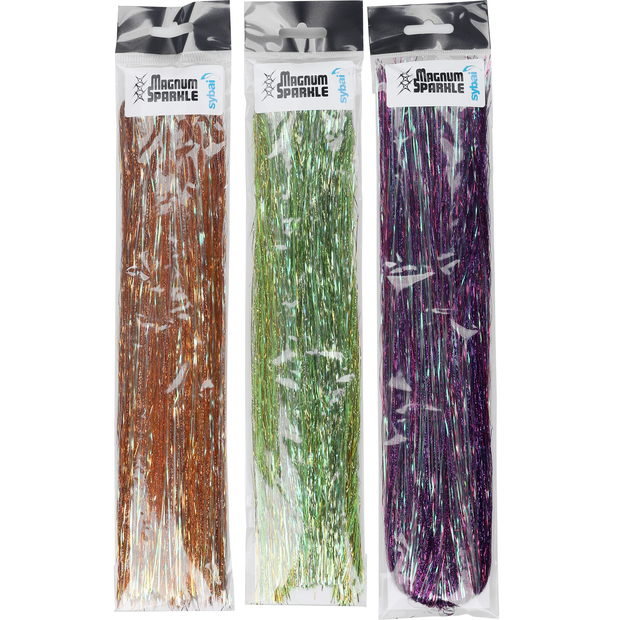 Scoprire Sybai Magnum Sparkle Hair - una miscela di fibre iridate, metallizzate e fluorescenti lunghe fino a 60 cm! Questo materiale eccezionale viene fornito in una confezione generosa con più di 1200 fibre, che aggiungono un'incredibile lucentezza e attrattiva alle vostre mosche.