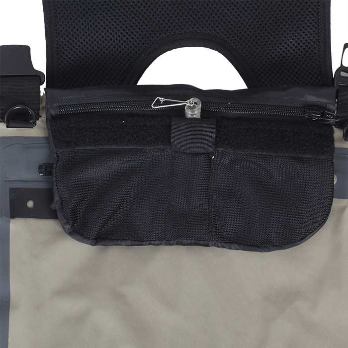 - Tasca esterna con chiusura a zip impermeabile per proteggere il contenuto dalla pioggia.