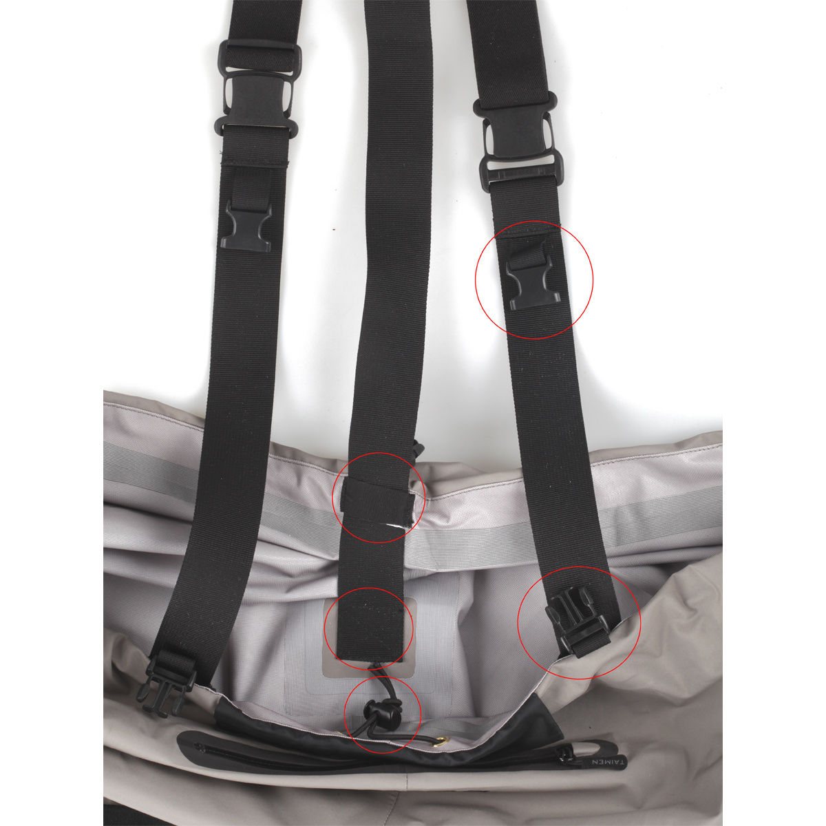 - Sistema unico di arrotolamento della parte superiore dei wader