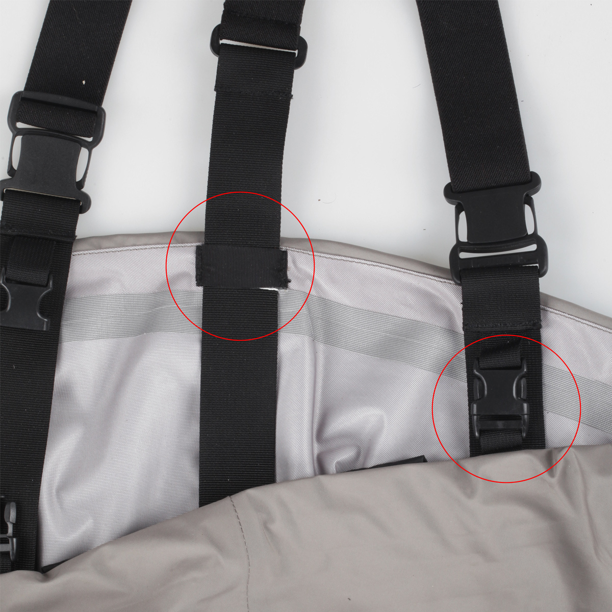 - Punti soggetti ad abrasione (sfregamento) rinforzati con nastro aggiuntivo.